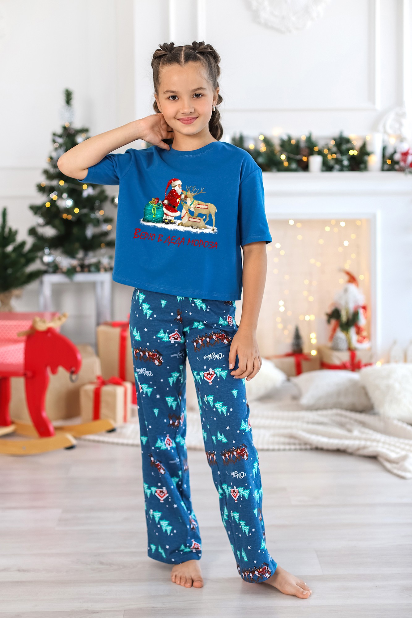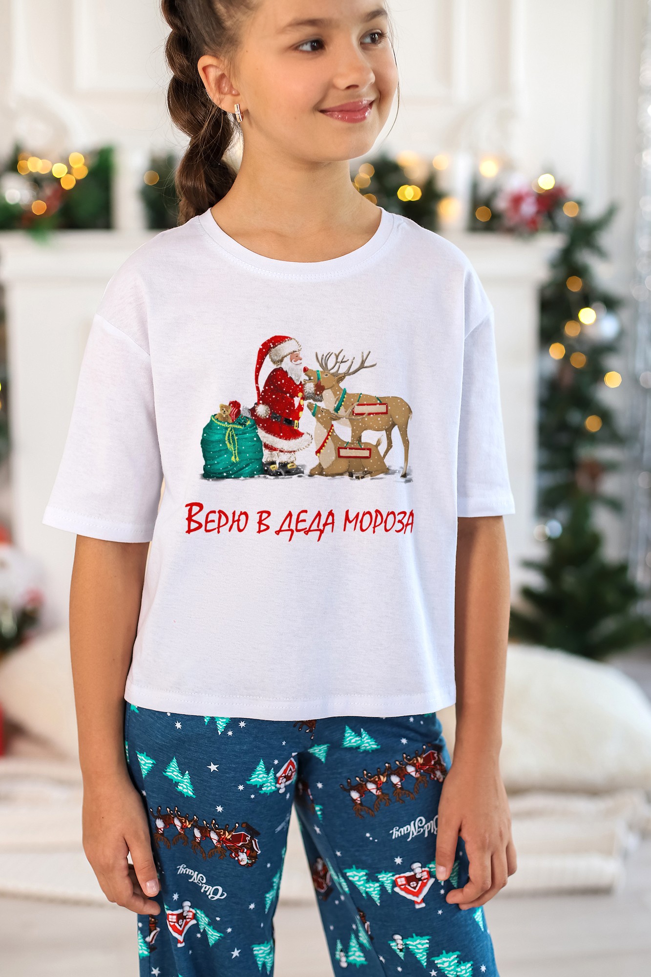 Костюм для девочки. Футболка оверсайз, с принтом. Брюки выполнены из полотна эксклюзивного дизайна; расширенные к низу, с боковыми карманами, на притачном поясе с отстроченной эластичной тесьмой.
