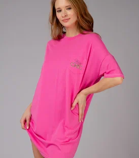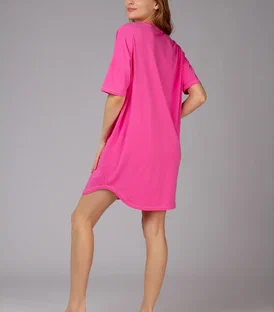 Сорочка из хлопка и бамбука, розового цвета, с короткими рукавами, прямая, свободного кроя. Её изготовление из натуральных материалов обеспечивает комфорт и удобство при ношении. Она мягкая на ощупь и отлично сидит на теле.Состав: 47,5% Бамбук 47,5% Хлопок 5% Эластан