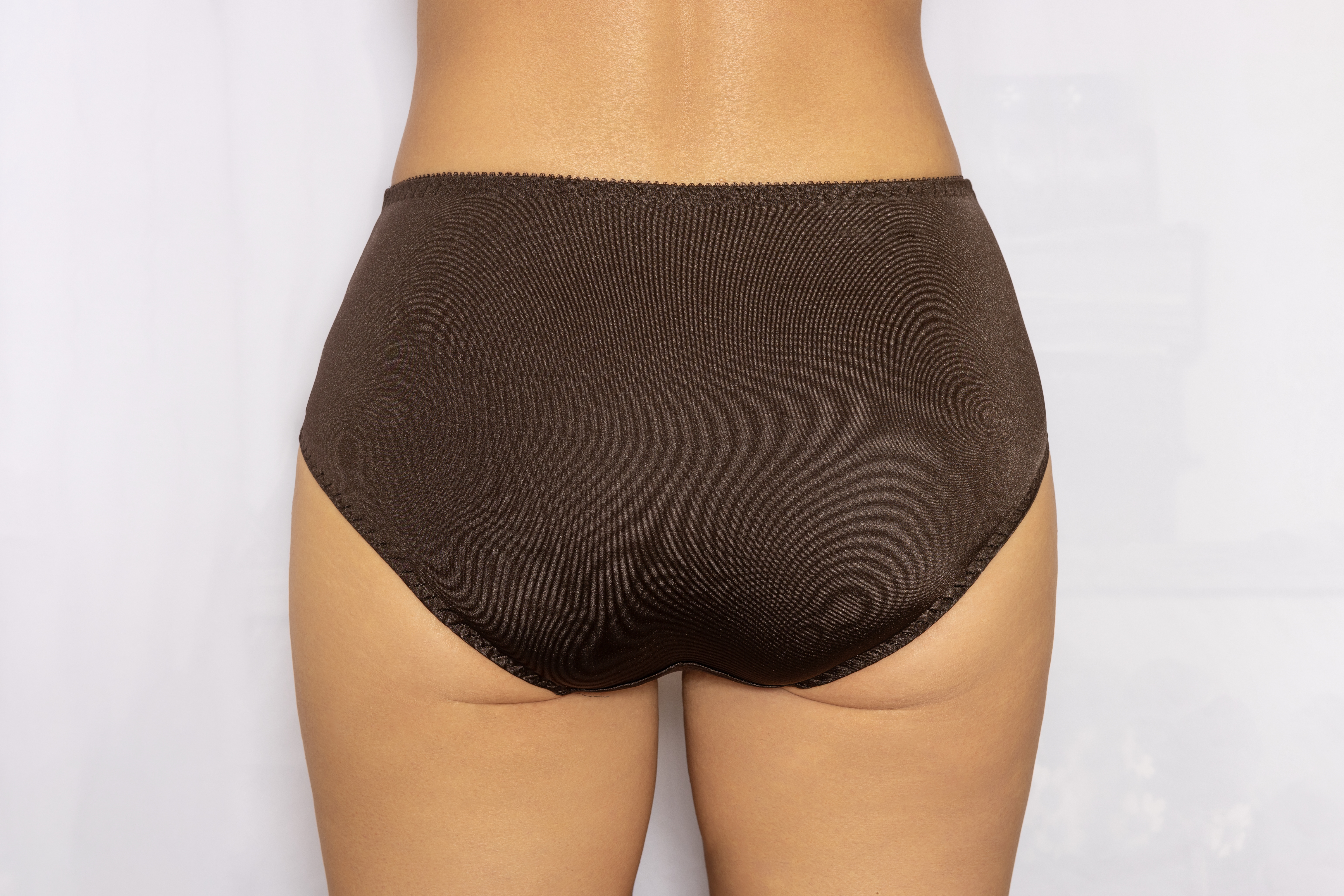 Трусы-слип с высокой линий талии макси. Выполнены из эластичного принтованного полотна и эластичного кружева. Срезы по краю ножек обработаны на плоскошовной машине.