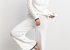 Пижама свободного силуэта состоит из лонгслива с длинным рукавом и брюк свободного прилегания.