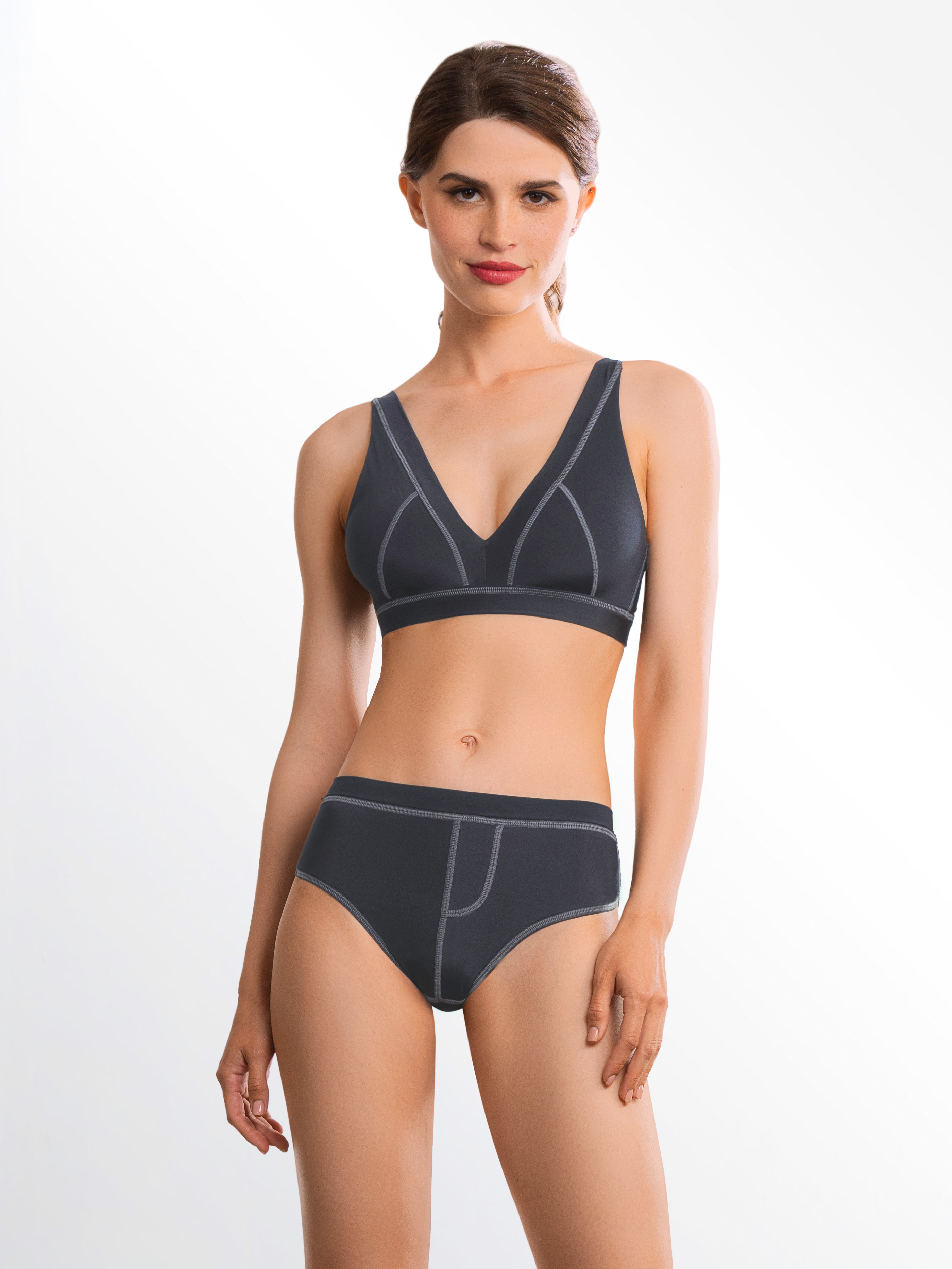 Бюстгальтер-бралетт с двухслойными мягкими чашками Siviglia, без костей. Съемные формованные вкладыши. Регулируемые бретели. Застежка в три ряда на три позиции. Выполнен из микрофибры. Коллекция "Riana".