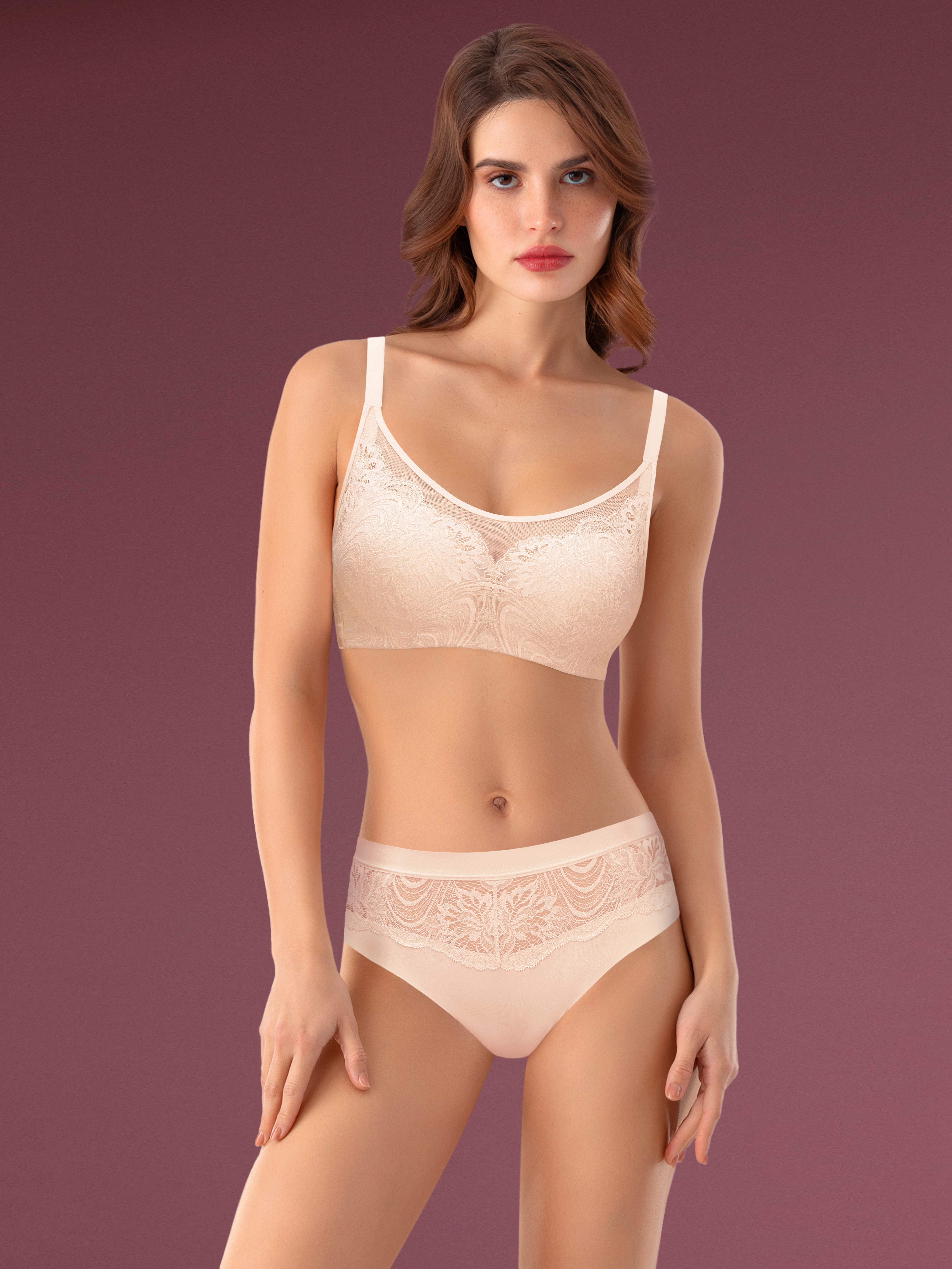 Кружево: 89% ПА + 11% ЭЛ, ткань: 60% ПА + 40% ЭЛ, подкладка чашки: 100% ПЕ