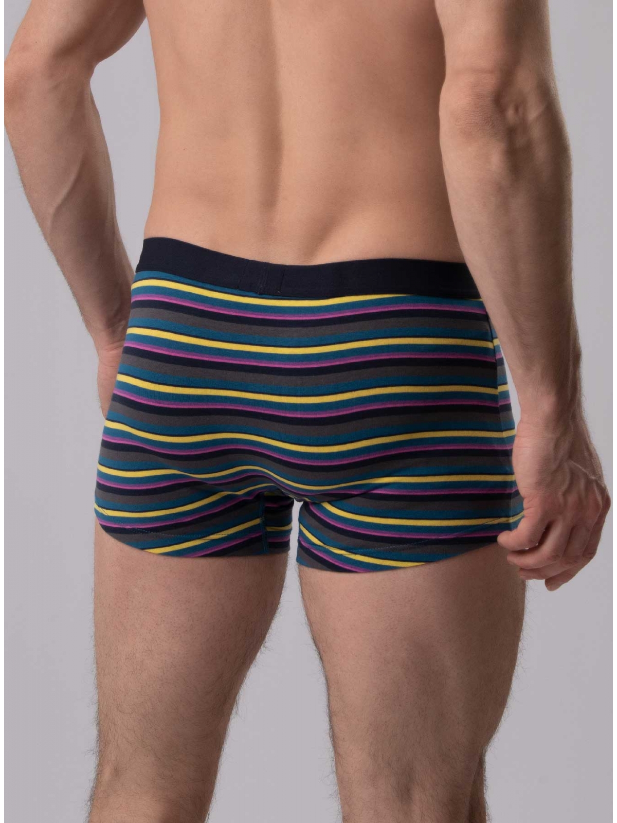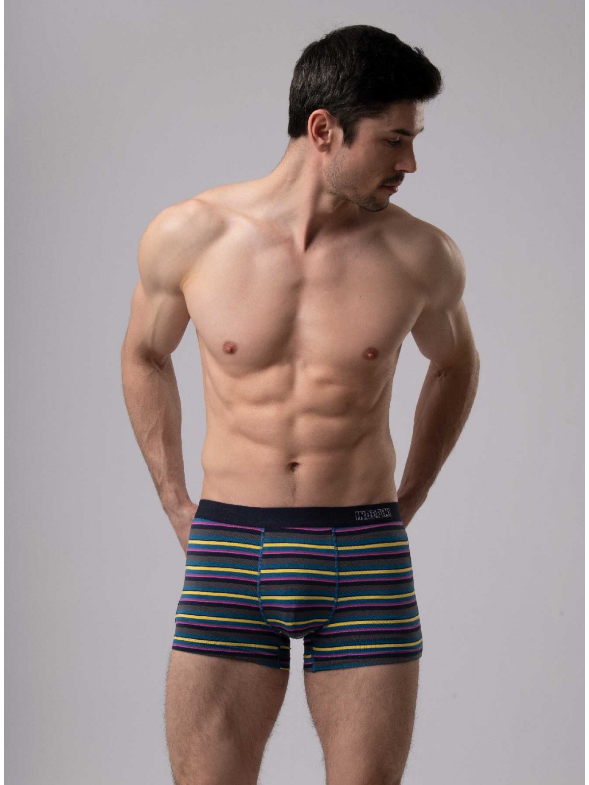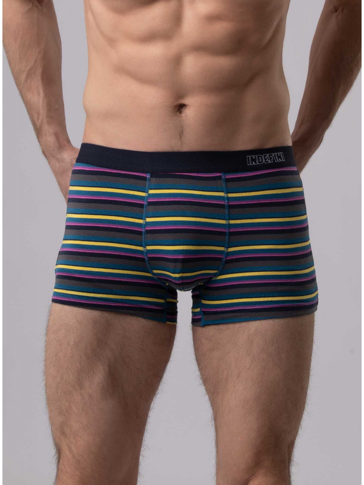 Мужские трусы от торговой марки Индефини. Трусы-боксеры из хлопка, серого цвета, с принтом в полоску, на мягкой резинке.