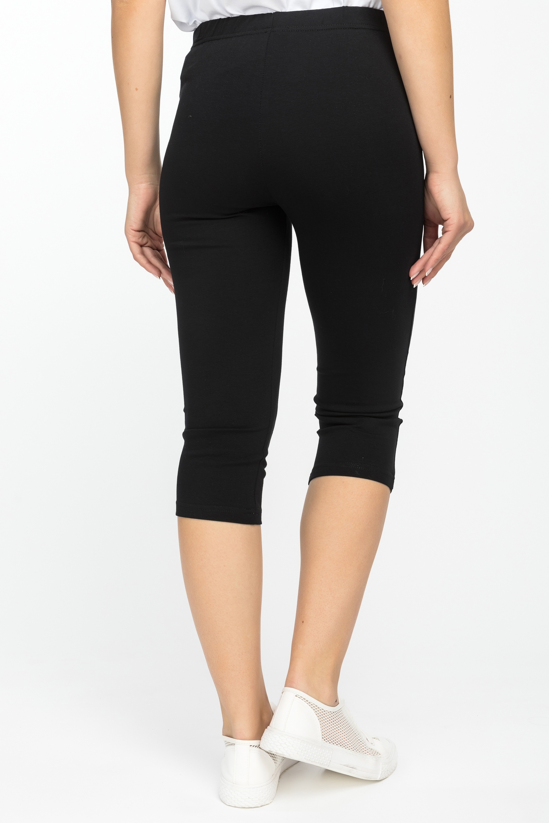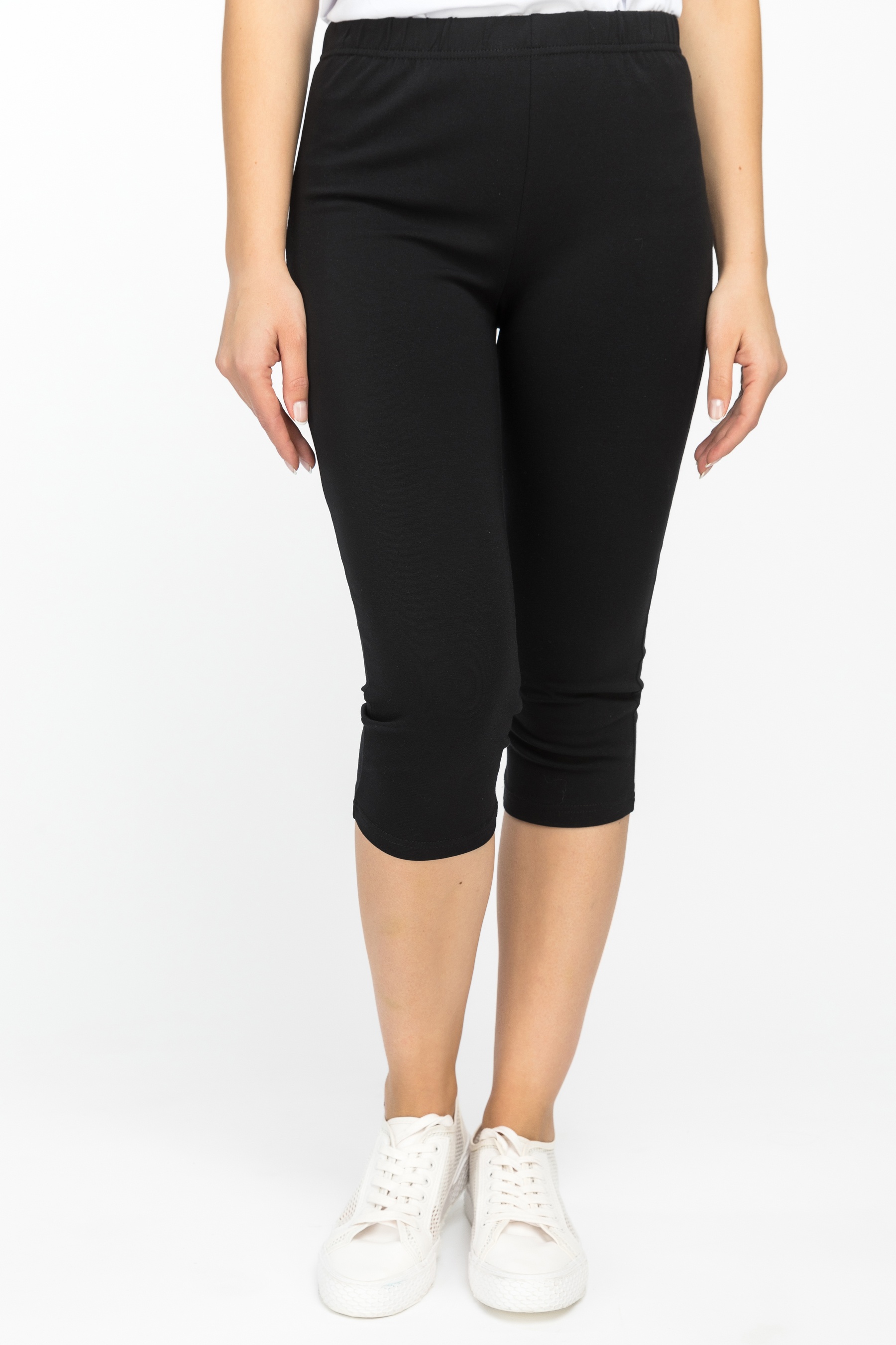 Комфортные облегающие бриджи выполнены из хлопкового трикотажного полотна с эластаном. Пояс с эластичной лентой внутри. Рост модели на фото 170