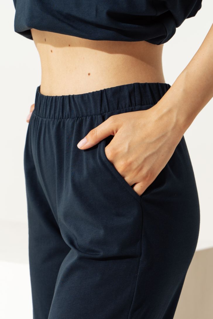 Брюки на резинке, зауженные к низу, на резинке с карманами в боковом шве. Выполнены из гладкого и прочного хлопка премиального качества. Ткань гипоаллергенна, гигроскопична и очень тактильна.