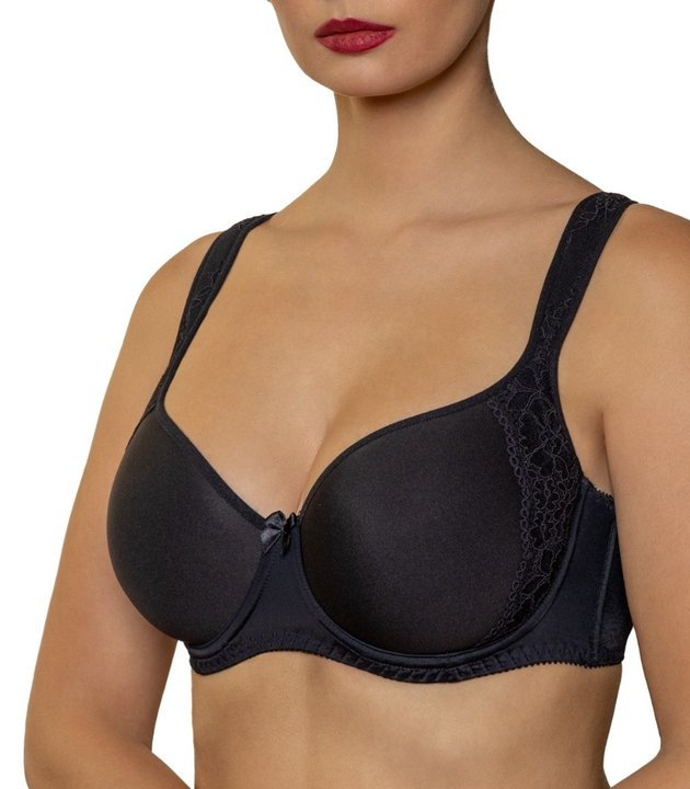 Бюстгальтер с формованными чашками "Spaser" с внутренним подкроем. Мягкие поролоновые бретели защищают плечи от трения и боли. Кружевные вставки на чашках, стан выполнен из материала "soft". Чашки бюстгальтера выполнены из 3D материал нового поколения и эластичного кружева. Гладкие формованные чашки будут незаметны под облегающей одеждой. На стане бюстгальтера боковые корректирующие пластины, позволяющие прилегать к телу и не скручиваться. Украшение: атласный бантик с подвеской.