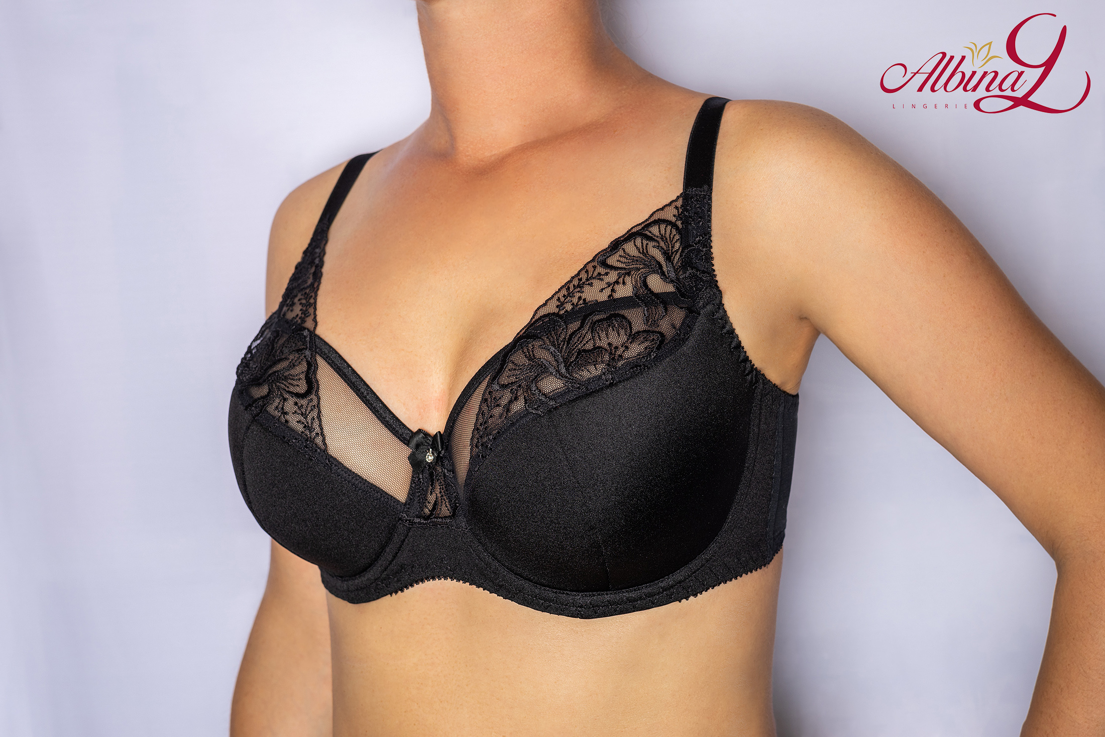 Бюстгальтер "полупоролон" 6050 из эластичной микрофибры, неэластичной вышивки и сетки. Нижние детали чашки на дубляже с хлопком. Бюстгальтер идеально сочетает функциональность и комфорт при носке. Ориентирован большую размерно-полнотную группу. Верхняя деталь кружева продублирована сеткой для наилучшей посадки. На стане бюстгальтера боковые корректирующие пластины, позволяющие прилегать к телу и не скручиваться поясу бюстгальтера, создают необходимую опору и делают силуэт более четким. Украшение: атласный бантик подвеской.