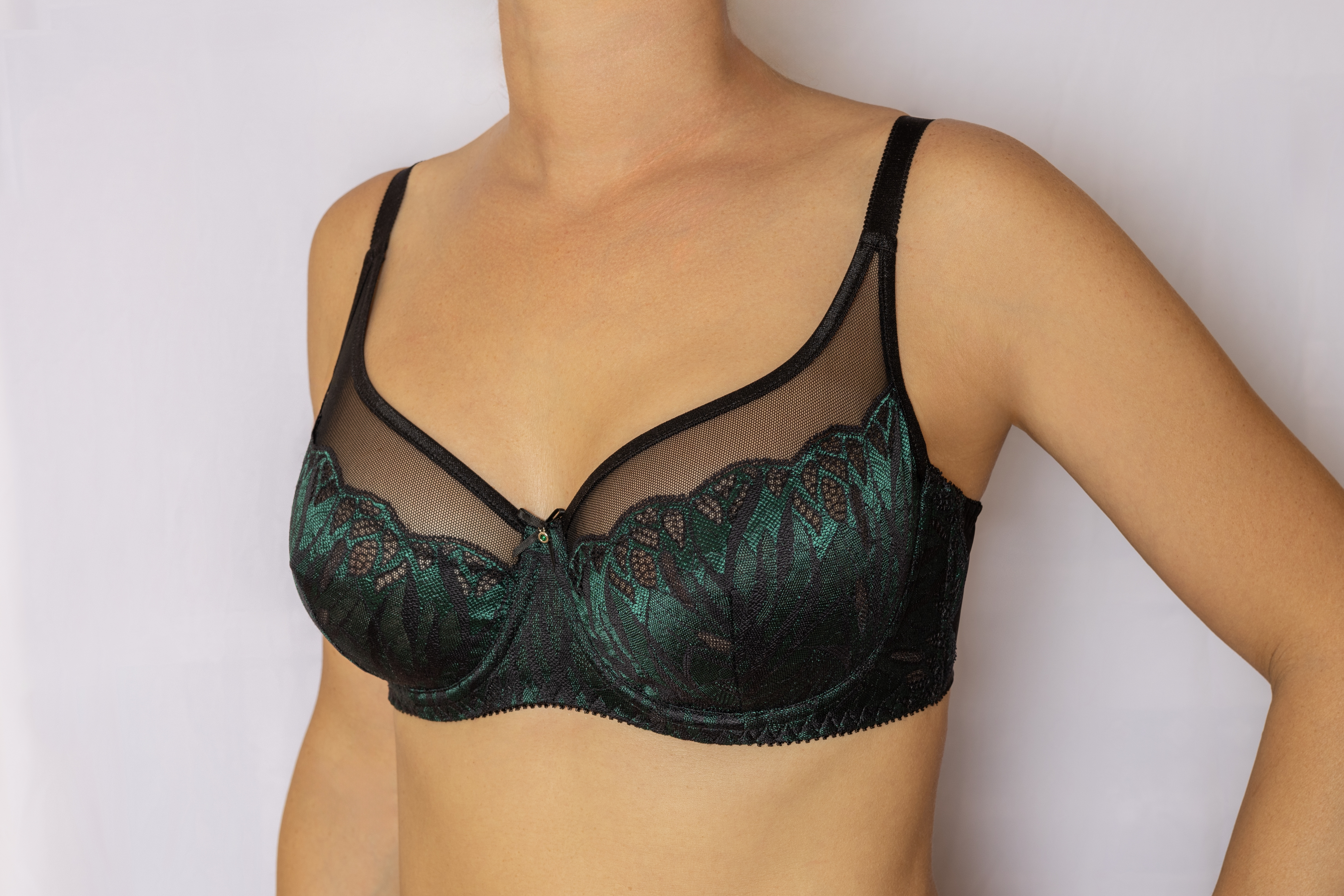 Бюстгальтер "мягкая чашка". Выполнен из эластичного изысканного биколорного кружева, сетки и полотна "soft". Бюстгальтер моделирует и поддерживает идеальную форму груди и подчеркивает ее естественную красоту, приподнимает грудь вверх, делая её более сексуальной. На стане бюстгальтера боковые корректирующие пластины, позволяющие прилегать к телу и не скручиваться поясу бюстгальтера, создают необходимую опору и делают силуэт более четким. Украшение: атласный бантик подвеской изумрудного цвета.
