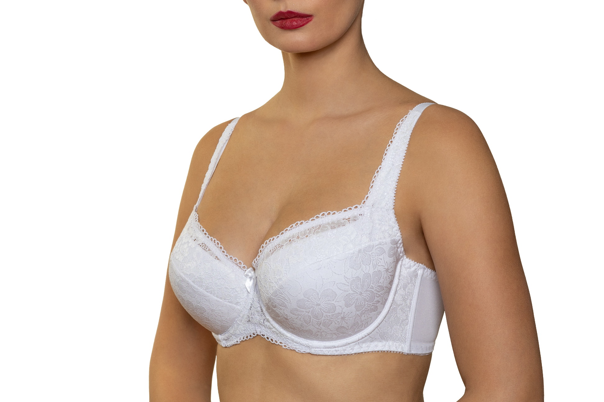 Бюстгальтер на поролоне. Выполнен из набивной микрофибры в точку и эластичного кружева. Нижние детали чашки на дубляже с хлопком. Идеально приподнимает и поддерживает грудь, создавая красивую зону декольте.