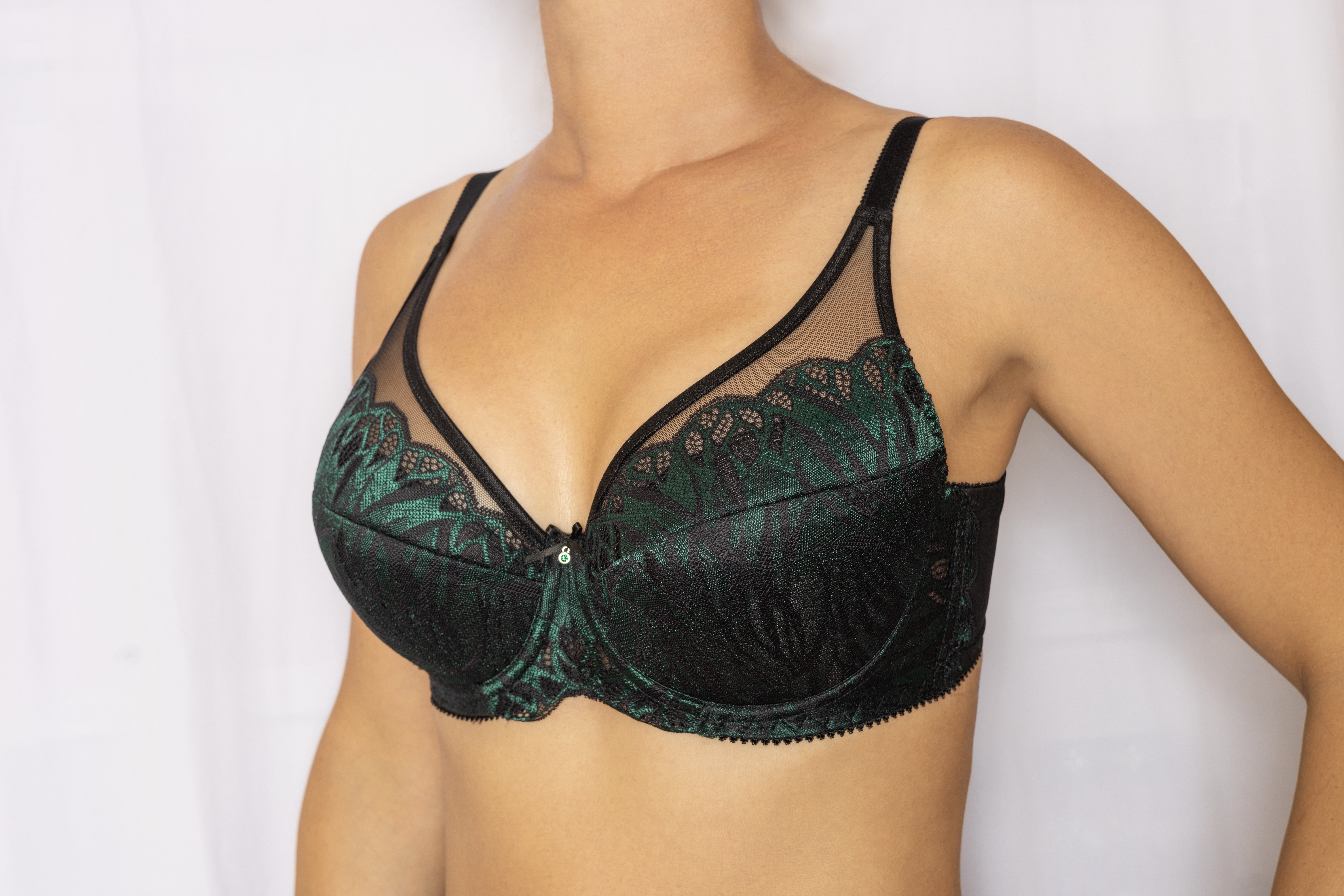Бюстгальтер "полупоролон". Выполнен из эластичного изысканного биколорного кружева, сетки и полотна "soft". Нижние детали чашек продублированы хлопком. Идеально приподнимает и поддерживает грудь, создавая красивую зону декольте. Благодаря поддерживающей функции, соблазнительному дизайну, его можно носить с любой одеждой. На стане бюстгальтера боковые корректирующие пластины, позволяющие прилегать к телу и не скручиваться поясу бюстгальтера, создают необходимую опору и делают силуэт более четким. Украшение: атласный бантик подвеской изумрудного цвета.