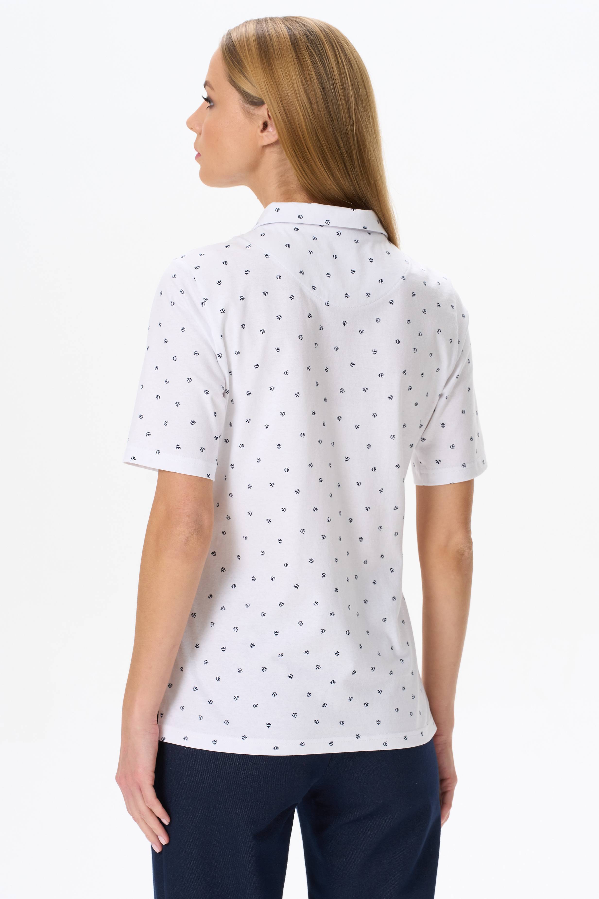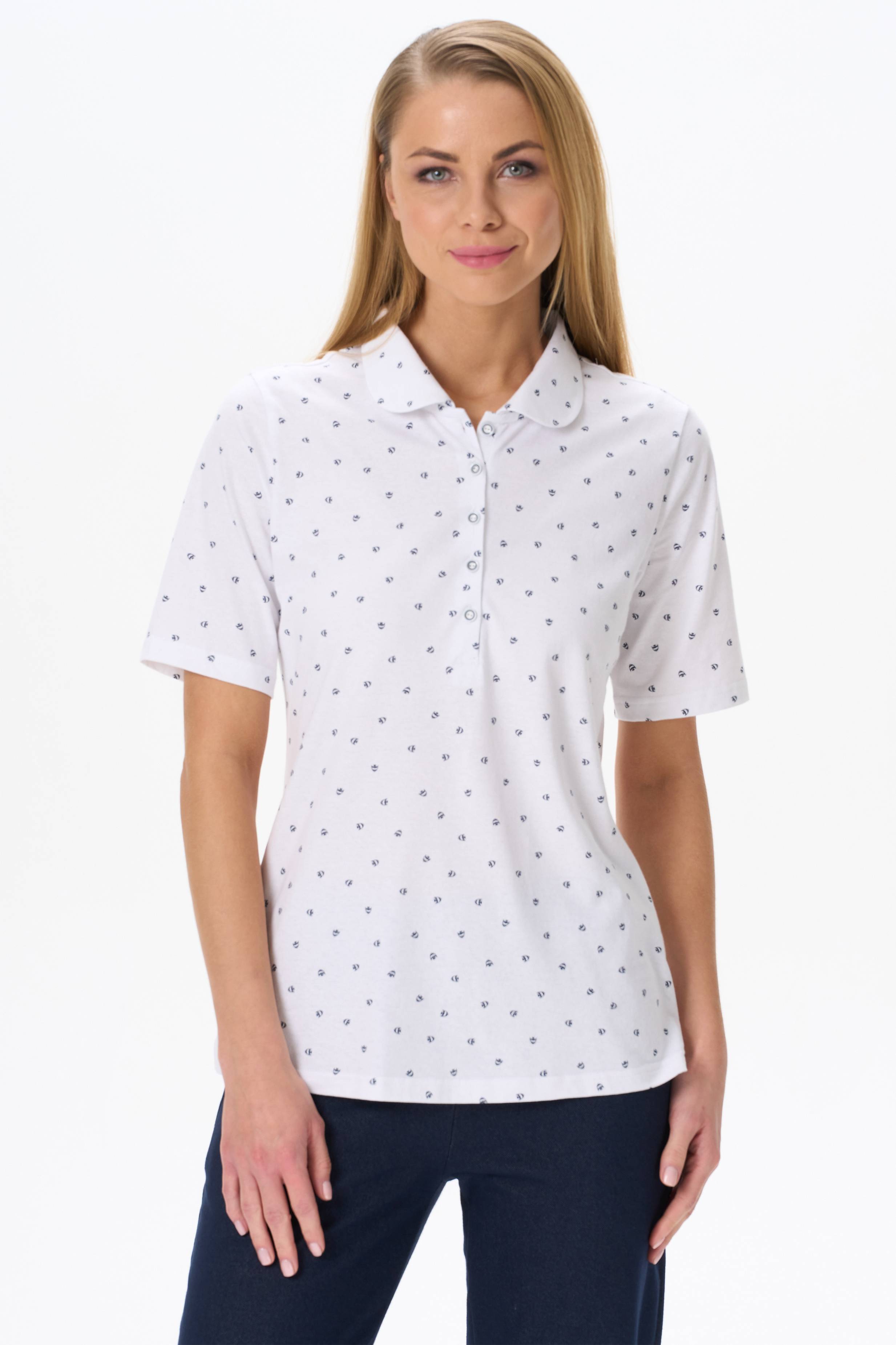 Футболка-поло из хлопкового трикотажного полотна. Короткий рукав, застежка на пуговицы, по низу изделия в боковых швах разрезы. Рост модели на фото 177см.