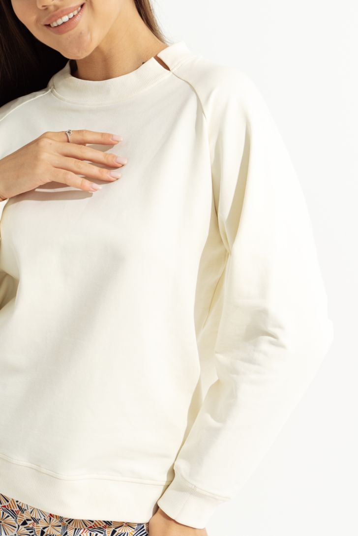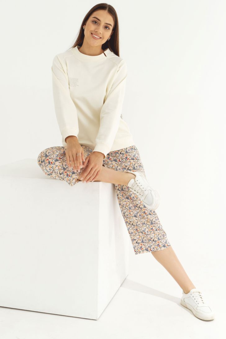 Джемпер свободного прилегания. Джемпер декорирован принтом. Длинный рукав, круглый ворот с кокетливым разрезом и пояс обработаны кашкорсе. Выполнен из гладкого и прочного хлопка премиального качества. Ткань гипоаллергенна, гигроскопична и очень тактильна.