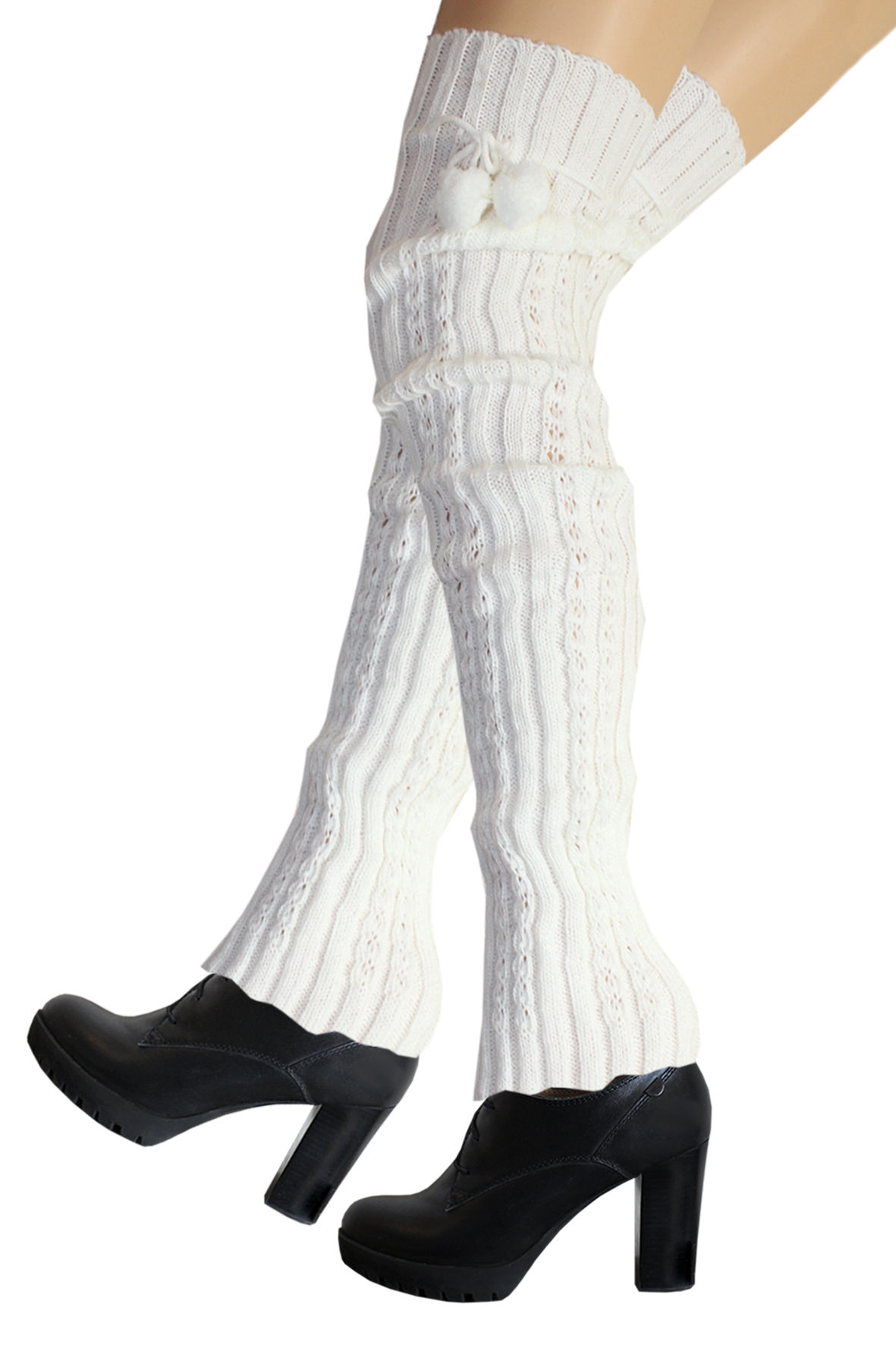 ГежWT-97 Гетры р.единый "Hobby Line" /12/ белый, вязаные, высокие, косички и лапша с бубонами
