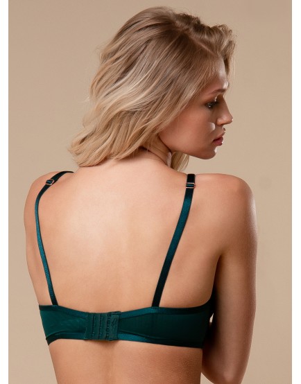 В комплекте бюстгальтер, стринги и трусы-слипы. Бюстгальтер кружевной изумрудного цвета, с Push-up, с косточками, лямки регулируются. Трусы и стринги изумрудного цвета, кружевные, на мягкой резинке, средней посадки. К бюстгальтеру идут трусы и стринги, размерами: 75B-S, 75C-M, 80B-M, 80C-L, 75D-L, 80D-XL, 85C-XL.Состав: 90% Полиамид 10% Эластан