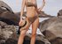 Раздельный купальник, изготовленный из полиамида, выполнен в цвете хаки. В комплекте бюстгальтер и трусы танга. Бюстгальтер на тонких регулируемых съемных бретелях завязывается сзади. Внутри имеются мягкие поролоновые чашки без Push-Up. Трусы танга средней посадки на мягкой эластичной резинке.