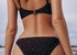 Раздельный купальник, изготовленный из полиамида, выполнен в коричневом цвете с леопардовым принтом. Купальник состоит из бюстгальтера и трусов танга. Бюстгальтер на косточках имеет тонкие чашки без поролона и без эффекта Push-Up. Тонкие бретели регулируется, сзади бюстгальтер застегивается. Трусы танга имеют мягкую тонкую резинку на талии. Бретели бюстгальтера и боковые части резинки трусов украшены декоративными элементами.