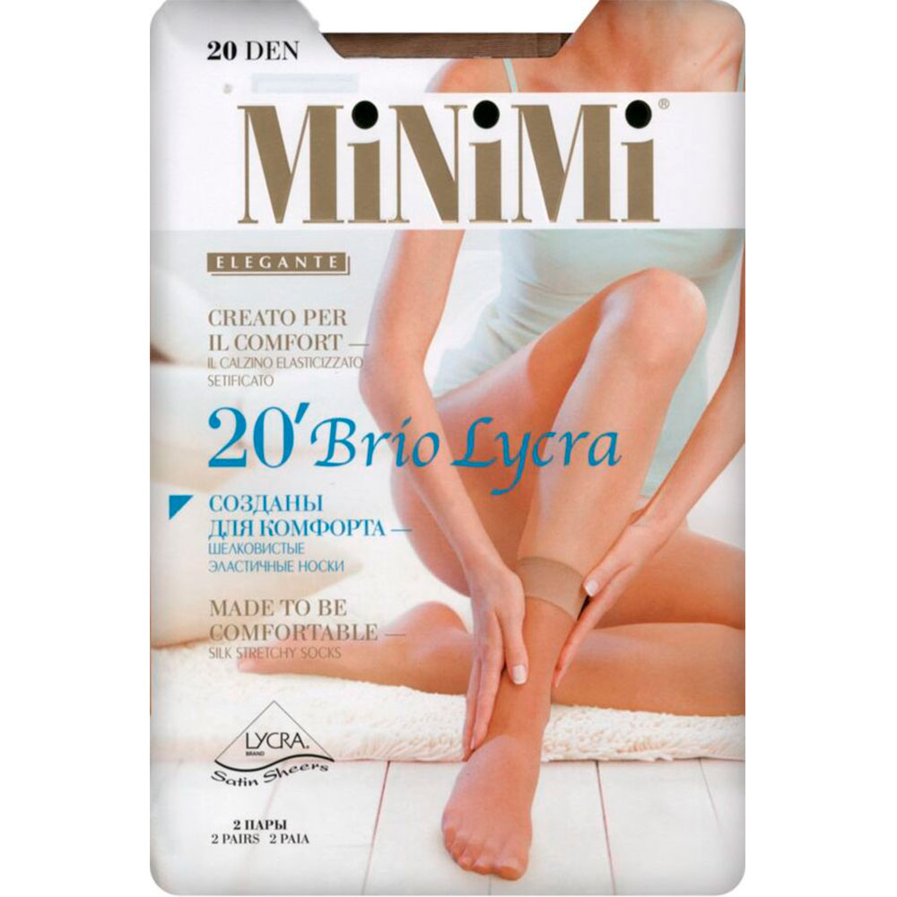 Эластичные шелковистые носки MINIMI Brio 20 Lycra с невидимым усиленным мыском. 2 пары в упаковке.