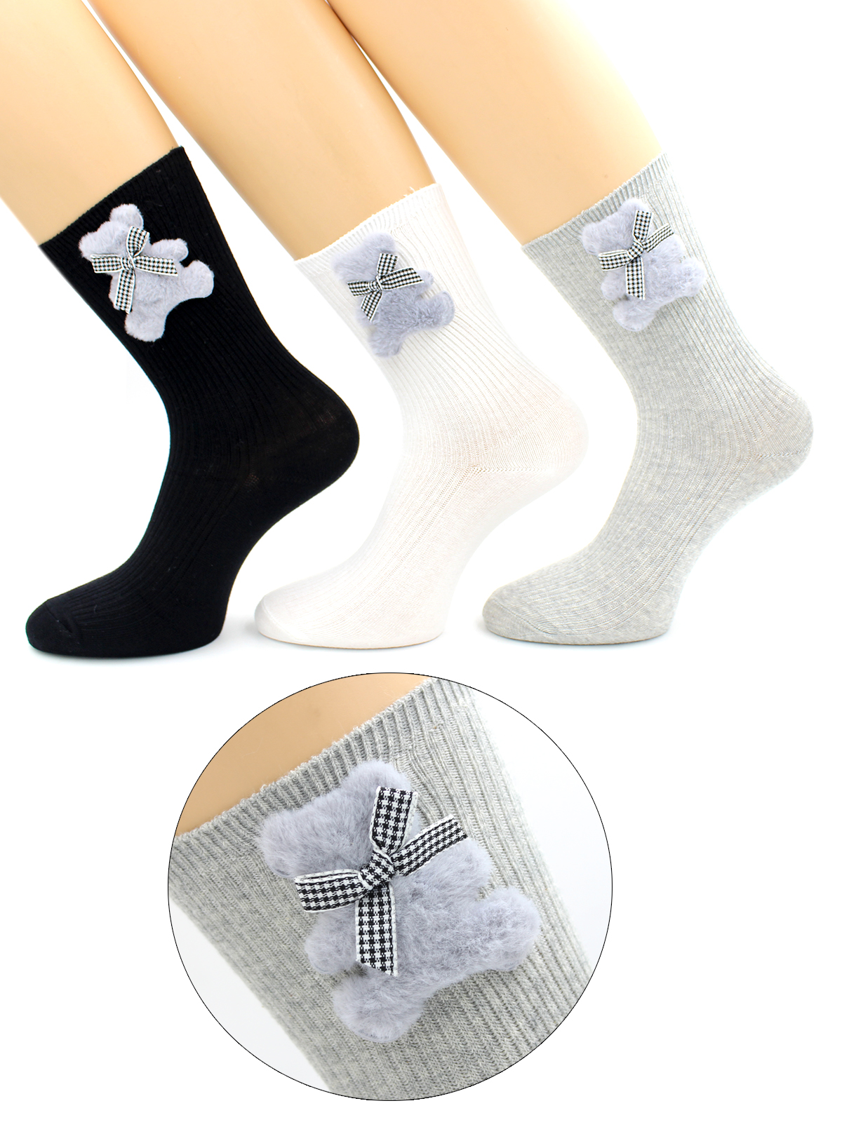Носки женские VIP "Hobby Line", лапша, пушистый мишка