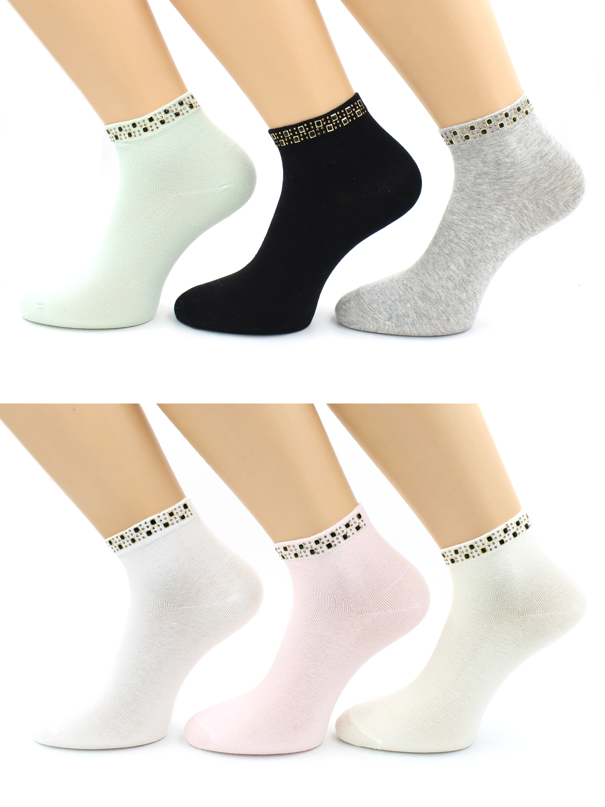 Носки женские VIP "Hobby Line" х/б, укороч. гладкие, окантовка из страз