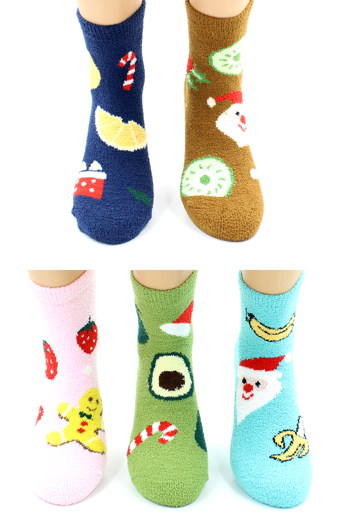 Носки женск. "Hobby Line" махровые-пенка, "Новогоднее фруктовое ассорти"