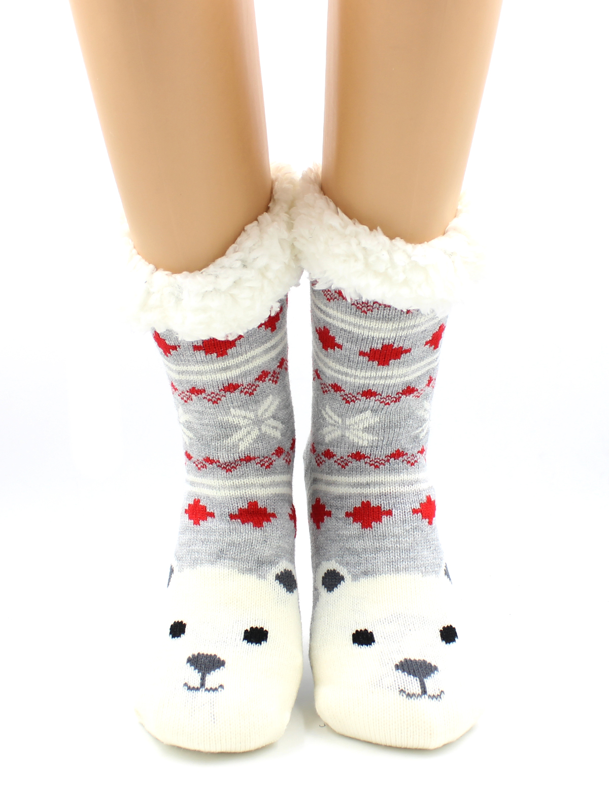 Носки женские с мехом внутри,"Белый мишка"