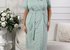 Халат из трикотажного полотна «кулирка» с набивным рисунком, на запахе, с короткими втачными рукавами, отделанными кружевом по нижним срезам. Бортовые срезы и горловина обработаны притачной планкой. Съемный пояс фиксируется на линии талии при помощи двух шлевок из окантовки в боковых швах.