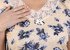 Сорочка женская из трикотажного полотна «кулирка» с набивным рисунком, свободного покроя, расширенная книзу, с короткими цельнокроеными рукавами и горловинй V- образной формы. Низ рукавов и горловина переда отделаны кружевом. В центре горловины - декоративный бантик из узкой атласной ленты.
