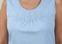 сорочка женская из гладкокрашеного трикотажного полотна «кулирка», слегка расширенная книзу без рукавов. Перед – с притачной кокеткой. Нижняя деталь переда присборена по шву притачивания кокетки. В центре кокетки 4-мя параллельными рядами настрочено узкое кружево. Горловина и проймы окантованы основным материалом.