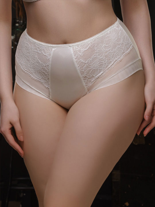 Трусики-слип с завышенной линией талии. Размерный ряд до размера 7. Особая конструкция срезов выреза бедра с окантовкой двойной сеточкой без использования резинок, делает их практически незаметными под облегающей одеждой. Высота бочка 11 см. Коллекция "Silva".