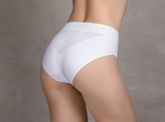 Трусы-слип с высокой линией талии, передняя деталь дублирована сеткой, дающей легкий моделирующий эффект. Задняя деталь по линии открытия ноги двухслойная, со скрытой мягкой плоской резинкой, необходимой для оптимального прилегания. Выполнены из микрофибры. Высота бочка 11,5 см. Коллекция "Adele".