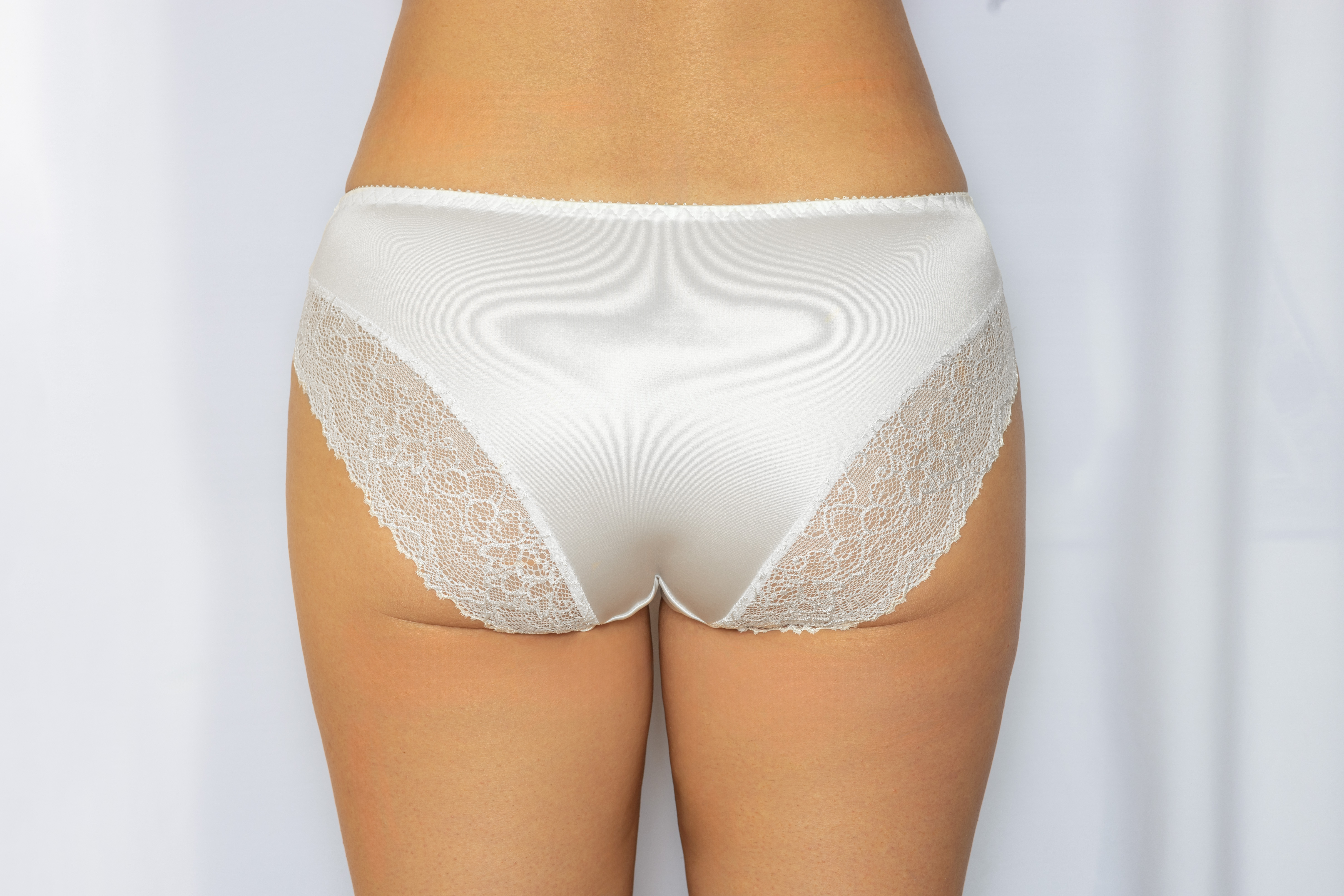 Трусы-слип со средней линией талии. Выполнены из эластичной микрофибры и эластичного кружева. Срезы по краю ножек обработаны на плоскошовной машине. Украшение: атласный бантик.