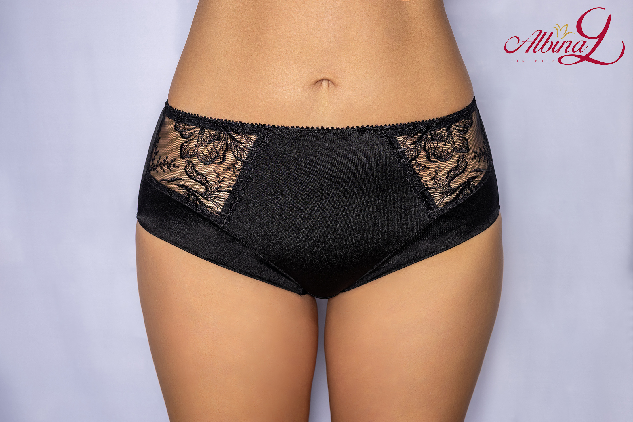 Трусы-слип комфорт 461 с высокой линией талии макси. Выполнены из вышивки на неэластичной сетке, микрофибры. Передние нижние детали выполнены "всгиб", что позволяет дамам с формами чувствовать комфорт при носке.