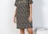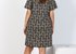 Туника из трикотажного полотна «кулирка» с набивным рисунком, прямого силуэта, с короткими втачными рукавами и горловиной V-образной формы, окантованной основным материалом, и принтом на полочке, выполненным методом шелкографии.