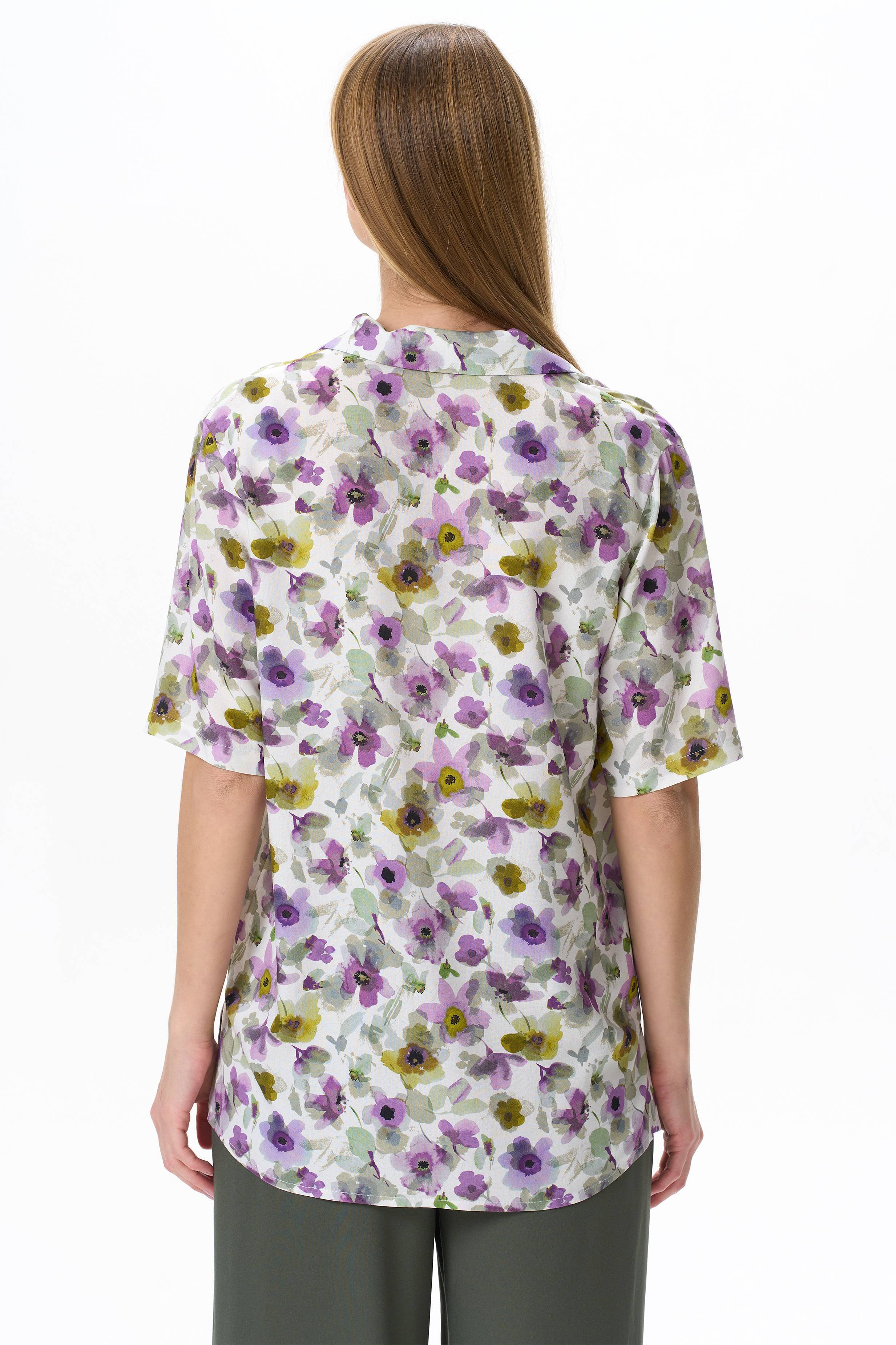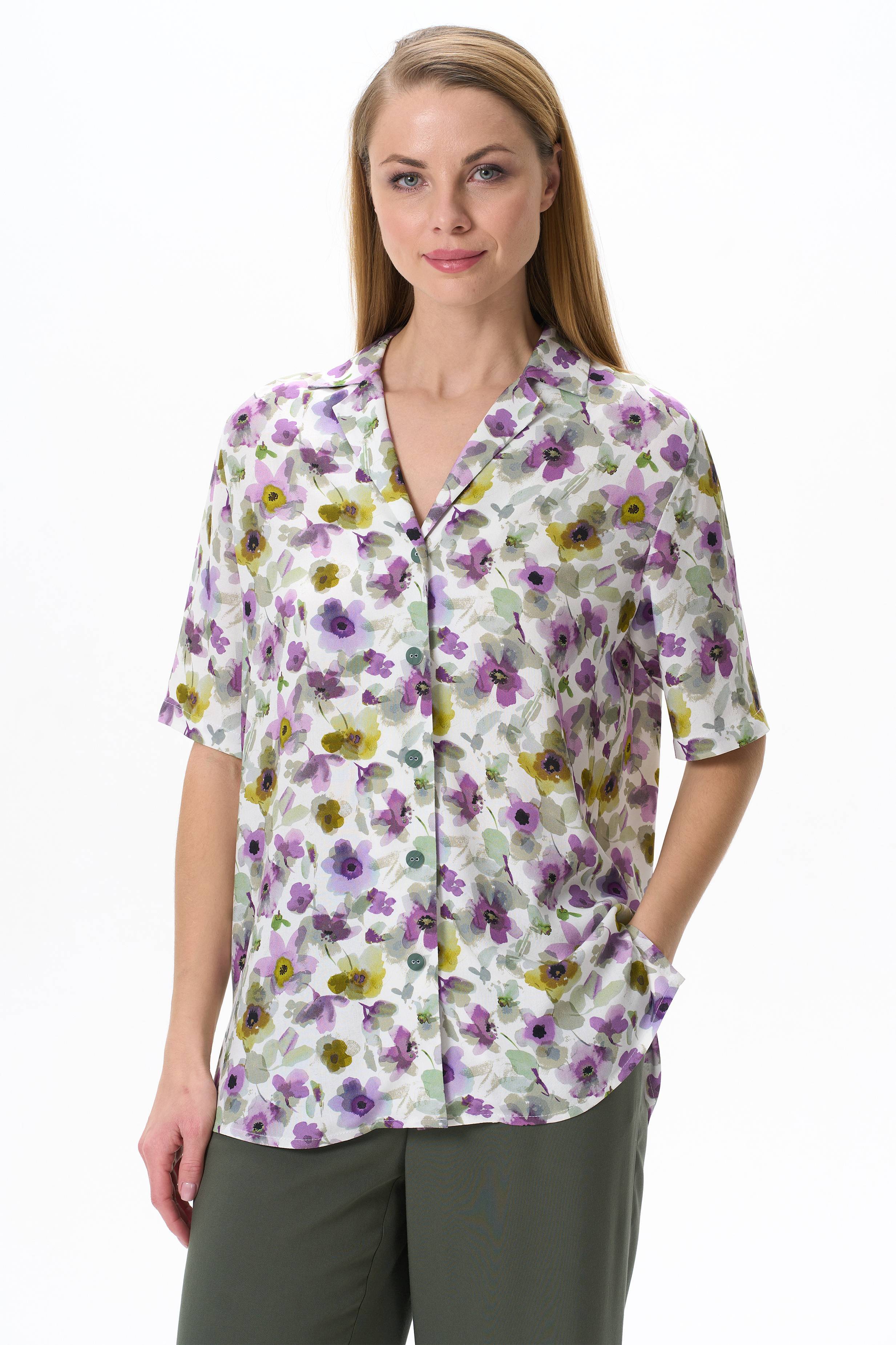 Класическая блузка с отложным воротником из легчайшего штапеля. Втачные ракава длиной до локтя. По низу боковых швов разрезы. Рост модели на фото 177.