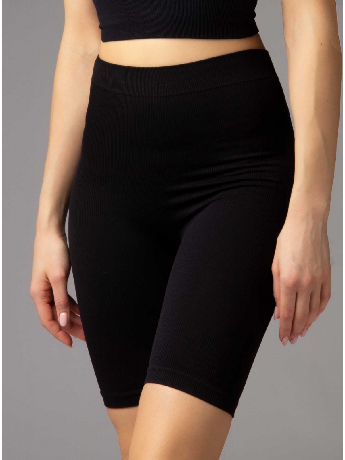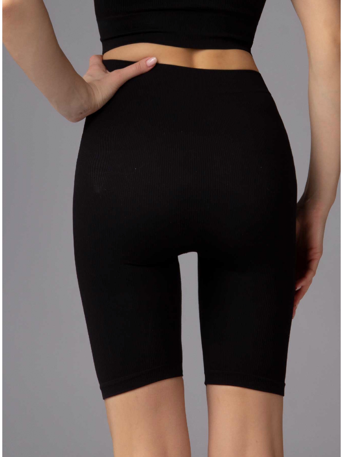 Женские шорты от торговой марки Индефини. Шорты-велосипедки черного цвета, в рубчик, из тянущейся ткани, с высокой талией, на мягкой резинке.